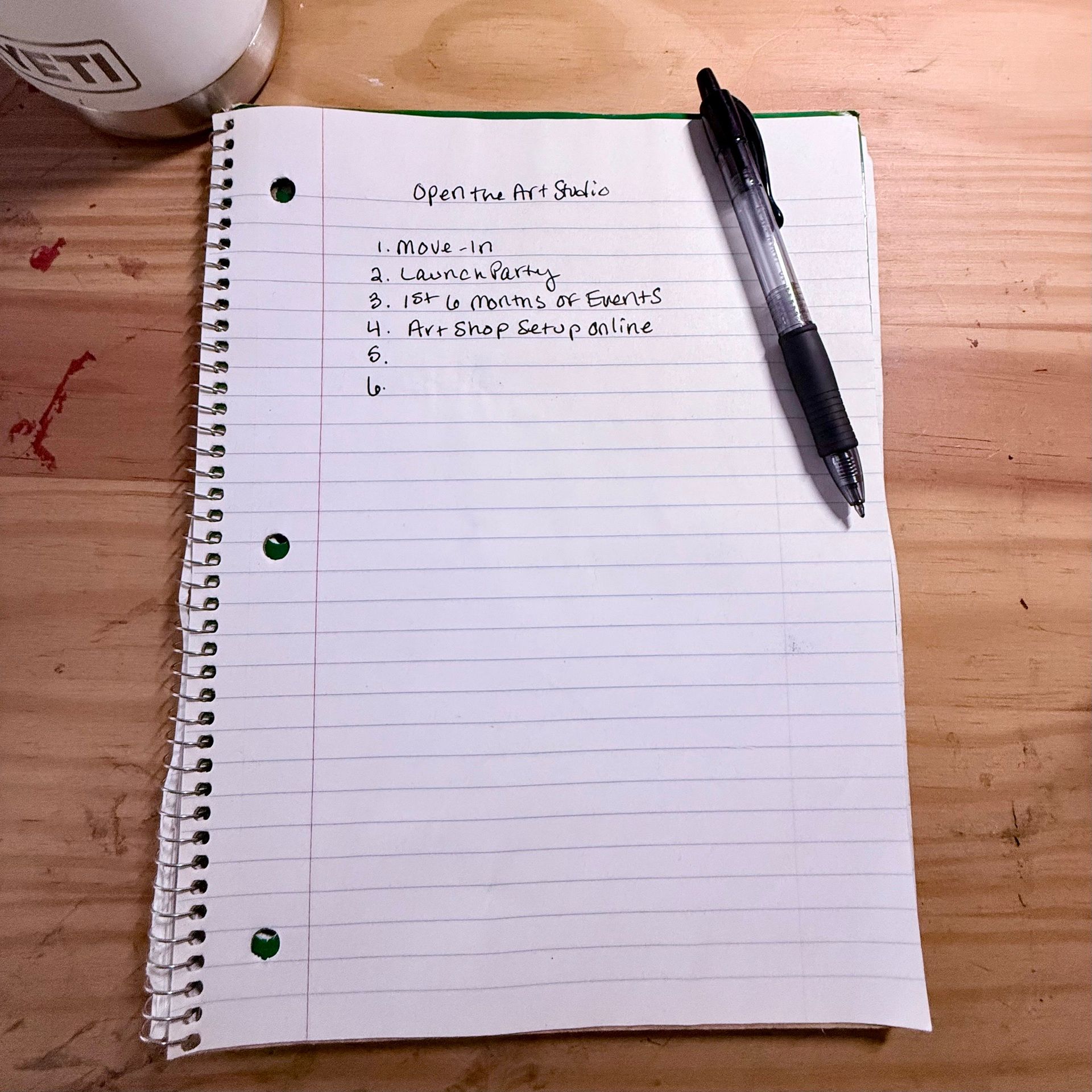 Here’s a 6-Point To-Do List I recently started. One of my goals for 2026 is to focus more on my art-writing-related projects, and I will be opening a joint art studio with a friend. I always start with a title (the overall goal), and then I write the numbers 1-6. Each of the things on my list is a sub-goal for my overall goal. I can then use each of those to create a smaller, shorter to-do list for each sub-goal.